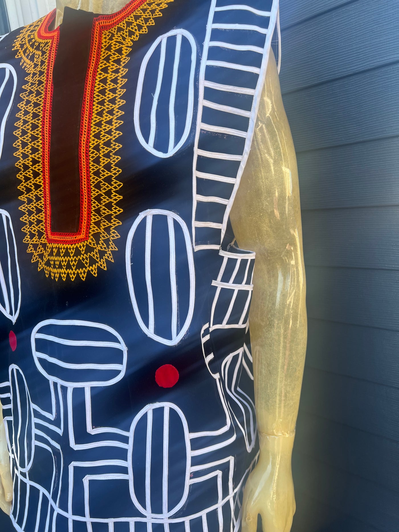 White Sleeveless Bamenda Toghu Jumper, Bias Dashiki, Toghu Tops, Unisex Tops